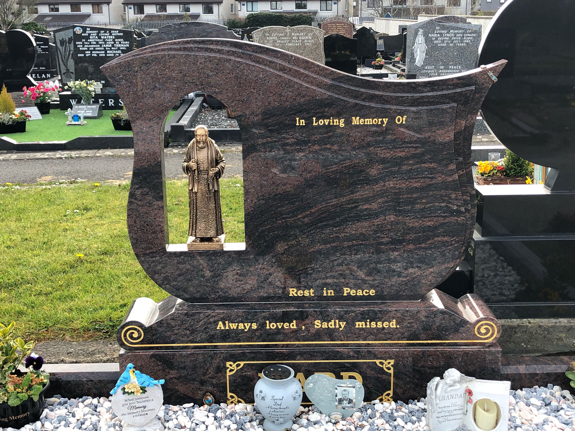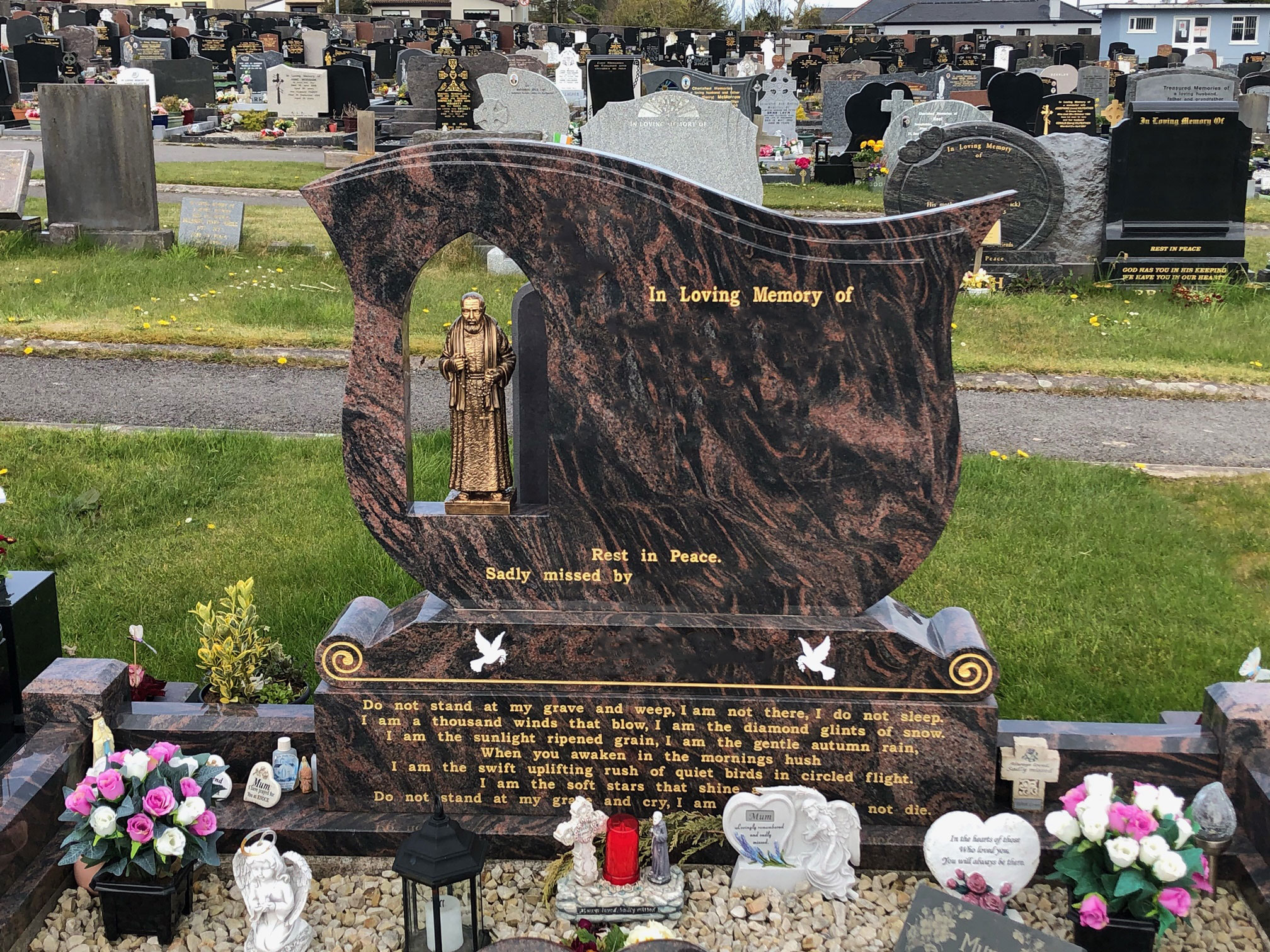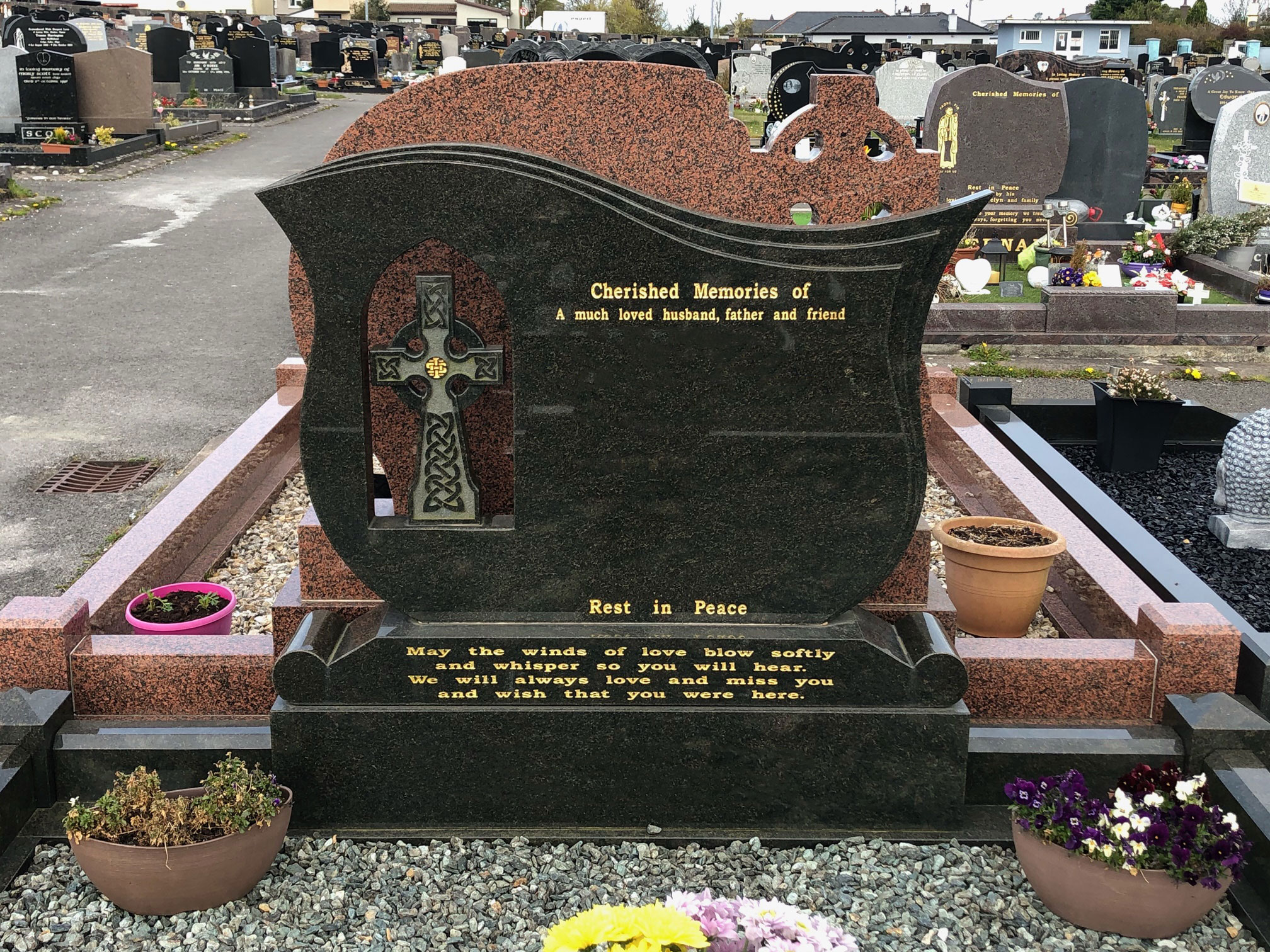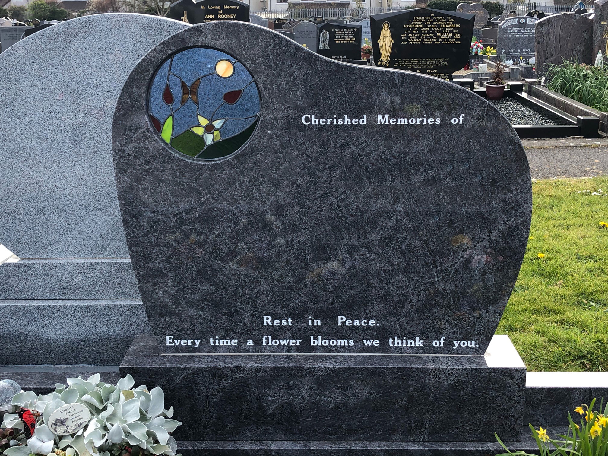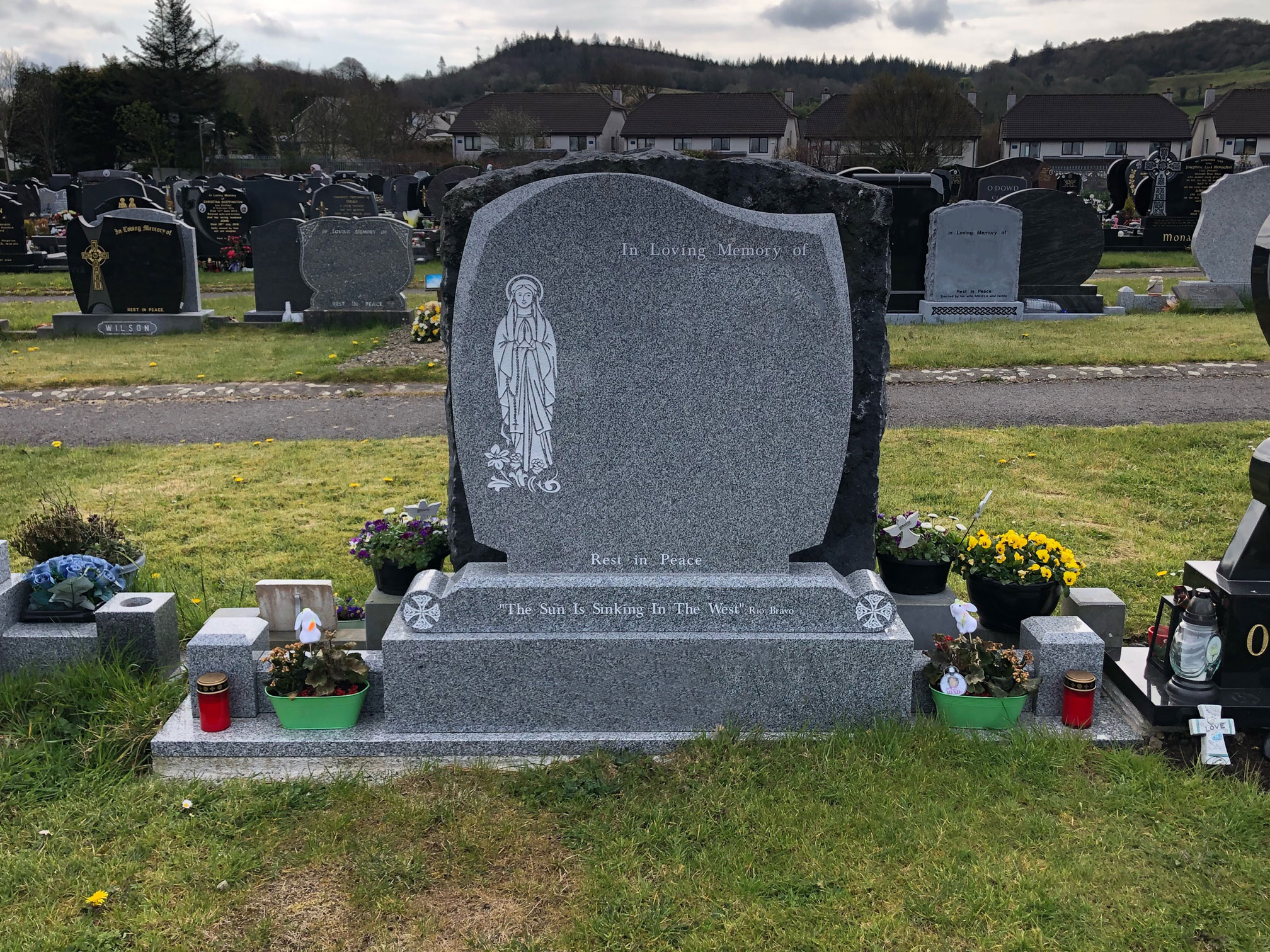 Choosing a headstone for a grave can be difficult to do, which is why our team offers professional and compassionate advice throughout the process providing you with assistance and support when you need it. If you are unsure what headstone you should choose,please visit our showroom in Sligo where you can see a full range of options and receive our brochure.