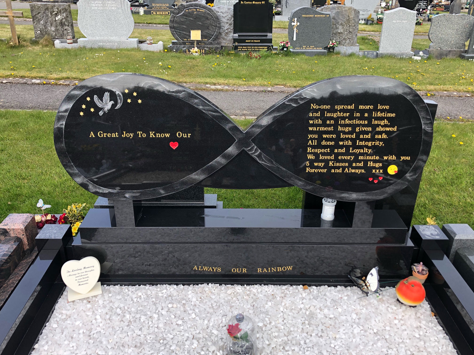 We make headstones to suit all styles and budgets and offer a range of materials including marble, limestone, granite, and natural stone gravestones. Our headstones come in a large number of shapes and sizes and are carved by our own master craftsmen to the highest of professional standards and we also offer a range of different shades, designs, shapes and finishes to suit your needs. Our master craftsmen create completely bespoke stonework using granite, marble, or limestone sourced from around the world. At CK Monumental, we believe that every headstone should be as unique as your loved one and adds a personal touch to their resting place. All headstones can be customised with bespoke inscriptions including text and imagery. Our custom-made headstones can be made to suit the size of the plot and are available with or without kerbing. We handle a variety of requests and always do our utmost to ensure that the headstone provided is a unique and fitting tribute to your departed love ones.